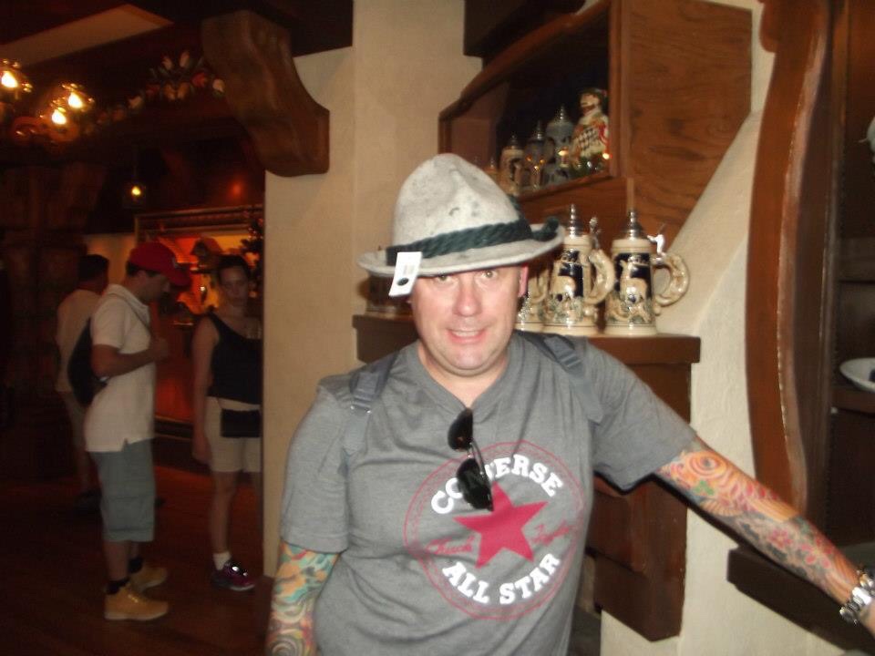 Out here is a stage where 3 guys in lederhosen and little green hats sing and dance and do the classic beer hall dance of clapping and slapping. The Grooving Alps they are called, very very funny. Nearby is the Snow White meet and greet by the wishing well. (Normally a large queue for this.)