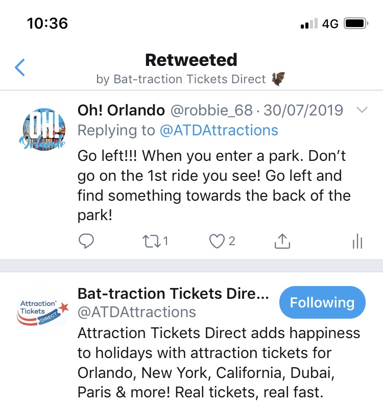 Accounts such as Walt Disney World and Universal Studios are a gold mine of information, sometimes getting a direct reply can take a little while longer, but they do reply! We love the fact in Disney, for example, if a cast member has gone ‘above and beyond’ for any reason you can tweet WDW and use the hashtag #compliment a cast member. This will get the person or persons the recognition they deserve. In a World as complicated as the one we live in, it feels good to spread the love and happiness by recognising someone’s efforts to make your day better.