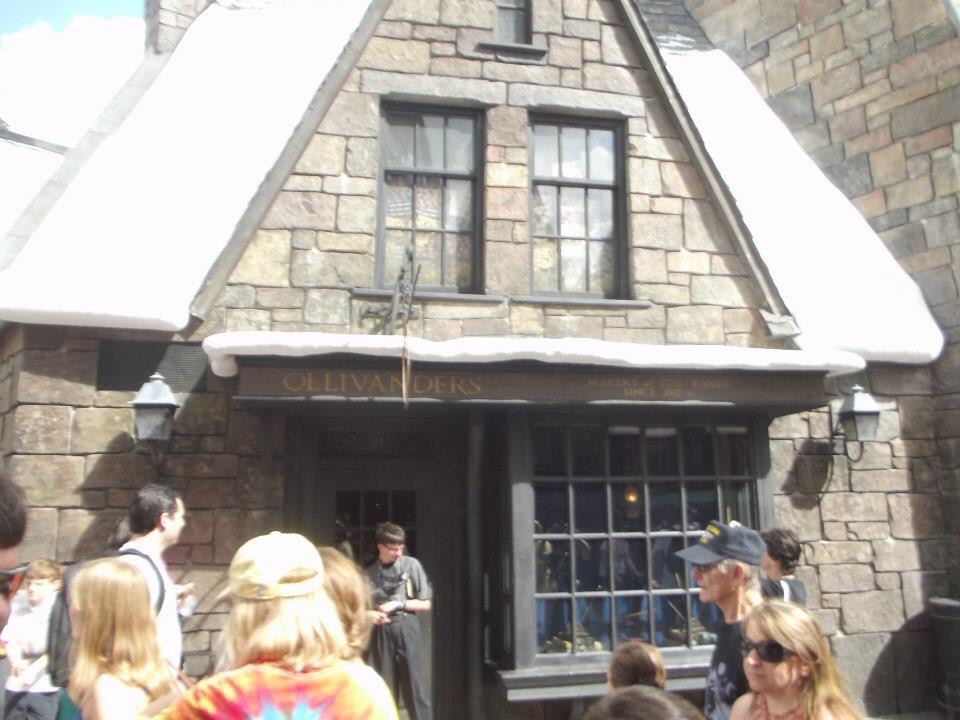 And so onwards we go – to The Wizarding World of Harry Potter – Hogsmeade. You’ll come face to face with Hogwarts first – and we mean a massive imposing completely realistic Hogwarts Castle! Amazing feast for the eyes – you can tell first time visitors as they approach and stop dead in their tracks and stare at sight. Inside Hogwarts is the Harry Potter and the Forbidden Journey ride. It is utterly fantastic – hard to explain as it’s a moving ride, but with film work used too and the game of quidditch you get involved in is great fun. Not to be missed. Even the queue is amazing – you are greeted by Harry, Ron and Hermione who cast spells and all sorts of wonderful things happen. The pictures on the wall talk to you just like in the films and you also meet Dumbledore as well.