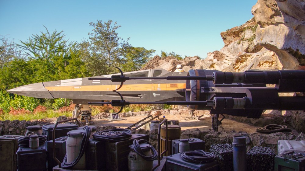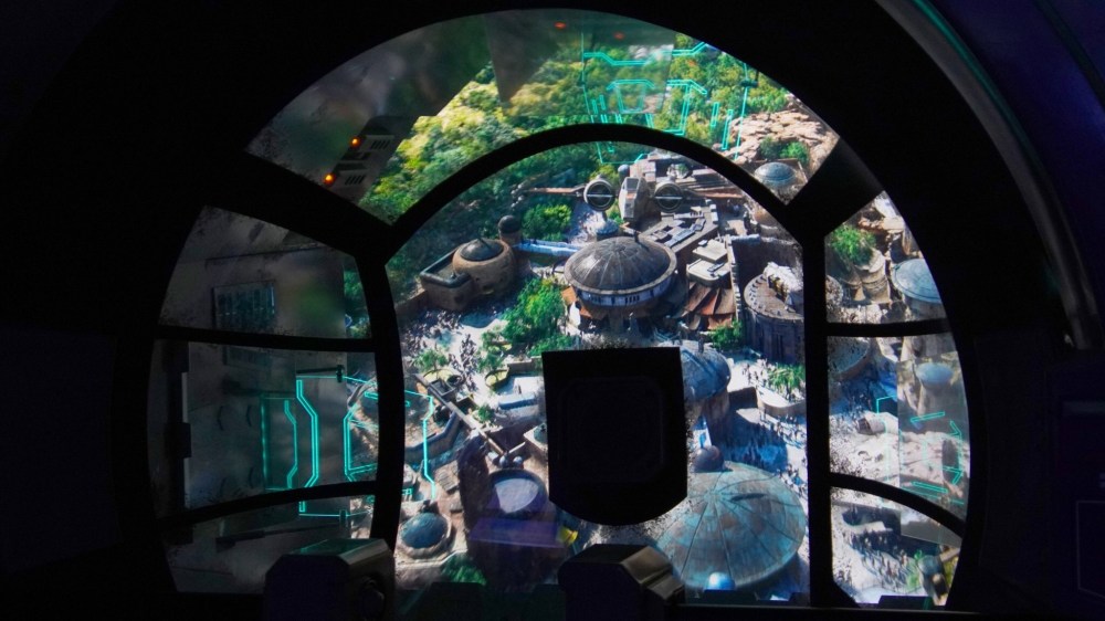 Millennium Falcon: Smugglers Run was the opening day attraction, you and your friends get to pilot the famous craft on a mission to steal from the First Order. Now if you had told us at age 11 that we could have piloted the fastest hunk of junk in the galaxy we would not have believed you..not gonna lie it’s a bit surreal to think that you CAN do it! Think Mr Oh Orlando is going to have a ‘moment’ when he first sees it. Let alone fly in it. The mission is flown on behalf of smuggler/business man Hondo Ohnaka of Ohnaka Transport Solutions. You will fly with a crew of 6, 2 pilots, 2 gunners and 2 engineers. Needless to say the pilot seats are the most requested. If your mission is successful and you have managed to ‘rescue’ cough cough.. the cargo you will have made a profit for Hondo, and he’ll be very happy! BUT if there is any damage to the ship you will be paying for any repairs out of your share! The level of detail on this ride is excellent, the cockpit is virtually the same as the ‘’Falcon” in the films, albeit the seats are laid out a little differently. There is a vast array of buttons to push and knobs to twist. So you won’t be stuck for something to do during your ‘flight’.