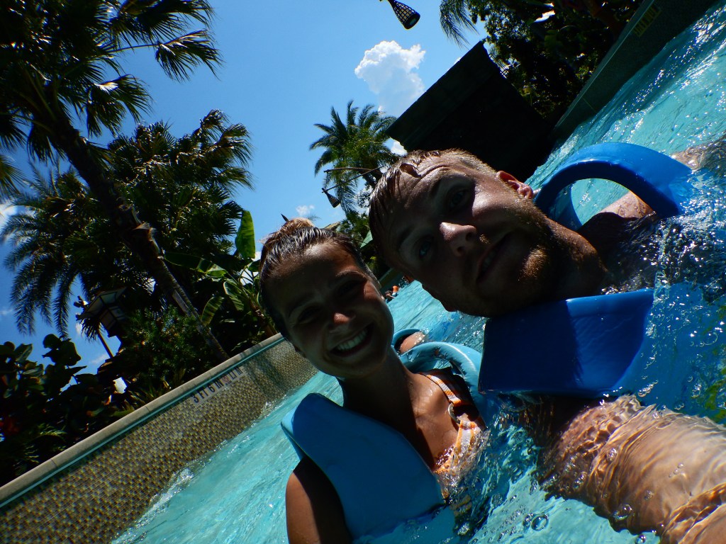 You cannot beat floating round in a lazy river! Bobbing along watching the world go by under the Florida sun. Marvellous. A good choice for an after lunch chill – like bobbing along on the sea on a lilo but without the possible drama of floating out too far and needing to be rescued. Come to think of it the crazy river is also absolutely fantastic – for very different reasons. It’s fast and fun and wild, they make you wear a life jacket so that’s how wild it is, and be warned – it also scraped mine and TIFF’s toe nail varnish off as we whizzed along struggling to stand up – but heavens how we laughed.
