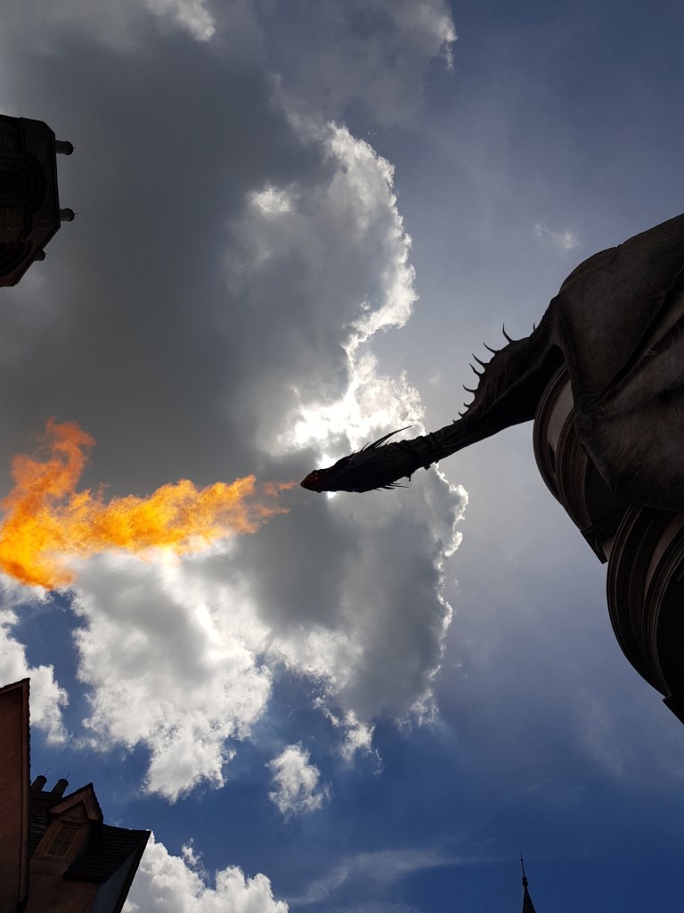 Our last little run about is over at Diagon Alley, the Gringotts Bank to be exact. The Dragon on top of the dome is just about the best picture you will take. Anywhere. Fact. A little tip if you want the perfect photo with the Dragon spewing flames is to wait for the “whooshing/growling” noise, you’ll know that the flames are moments away! A fun thing to do is to watch folks faces as it roars! It catches loads of folks unaware.