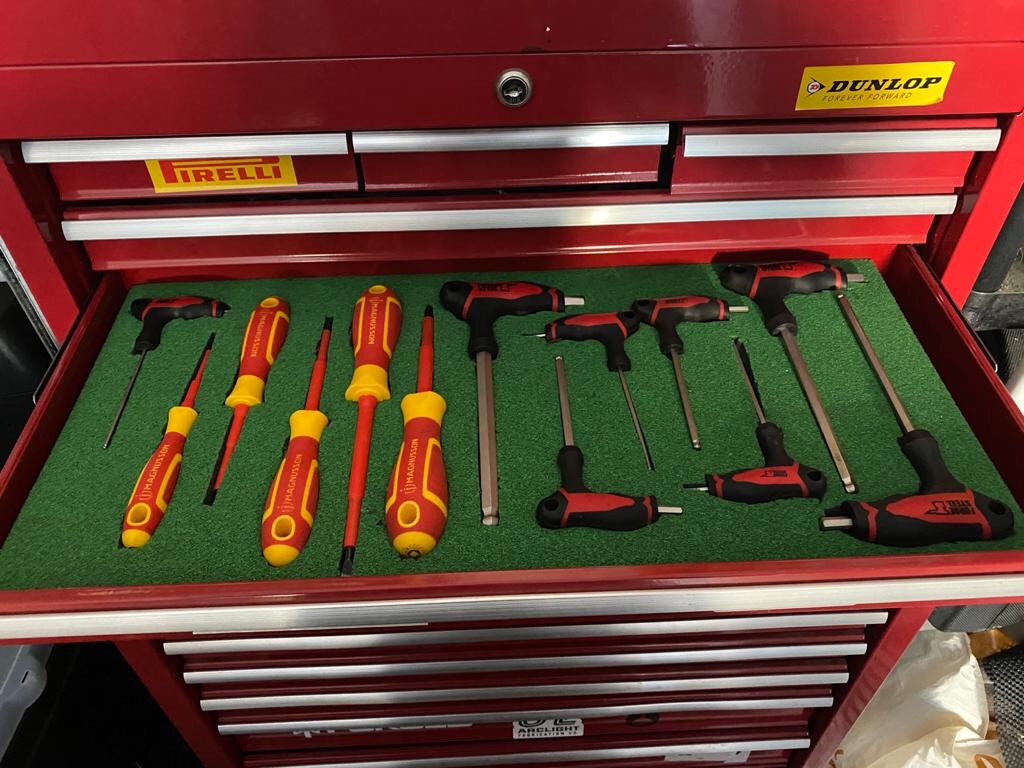 When I’d done all that I decided the garage needed a clean out. (I really do like making a rod for my own back don’t I?). As I work for Jaguar Landrover as an engine builder – we have set standards to work and clean by. We call these “5-S” “sort, set, shine, standardise and sustain”. So off I went, anything that wasn’t used got put away or recycled. My tool chest was cleaned out and a little search on Amazon found me a tool tidy set. This kept me quiet for most of the day. And the end results are well worth it – all tools in their home, no more searching for 30 mins for a socket! Amen!!