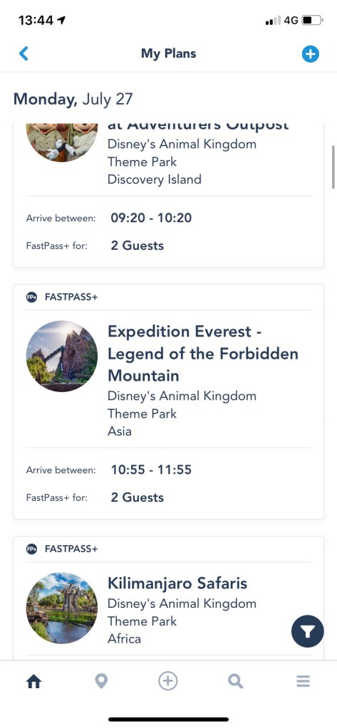 I guess we had naively thought that if you had already booked a Fastpass for a particular park on a particular day, that might mean WDW assumed you wanted to be in that park on that day and somehow, that the My Disney App might allocate that accordingly as part of the new park booking system. However magic and fantastic that App is, we maybe overstretched it’s ability in this instance. In fact what actually happened was that within a couple of days of us booking our Fastpasses, and watching social media with everyone screaming about what was happening on the My Disney App, our Fastpass reservations all disappeared as everyone had said they would. Just – ping! – and they were gone. Strangely though our two ADR (advance dining reservations) remain booked – very odd! So now we’re careering down a crazy steep hill not know where it’s going – maybe it’s a dark roller coaster and we can’t see what’s happening, but it’s making our tummies churn and we don’t know what’s coming next – see, still picking up on this coaster up and down theme!