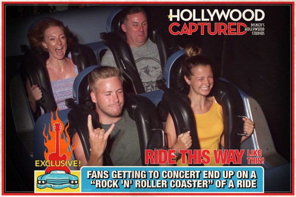 THE FREEWAY IS JAMMED! BUT WE BE JAMMIN’ these words on the road works sign tell you that this ride is going be “off the hook” as we say. The Aerosmith Rock n Roller coaster is one of the best you will ride. It’s also the only coaster you go “upside down” on in WDW. Don’t let the age of this ride fool you, from the initial get go in your limo you will be scooting along at 57mph, its 0 to 57 is 2.8 seconds. None to shabby. Before I get ahead of myself I have to mention the pre show/queue, one of the best ones in any parks. You enter into the recording studio where Aerosmith are recording some new tunes. After they convince their manager to get you tickets to tonight’s show and order you all a ‘super-stretch’ limo, you pop down to the garage to get into your super fast ride, the cars are filled quickly and then the ride begins. From the first burst of speed you scoot onto the freeway and thats when the speed run through traffic and road work dodging begins. This ride really throws you about. And when I say really, I mean REALLY, you are never sure of what way is up! We love the music on this ride, as a rock fan of “many” years it bring a tear to my eye hearing stuff I grew up on. After whipping about and flying around corners and dodging signs the ride comes to a screeching halt at the concert. We love the fact that most people are doing that ‘half laugh/ half confused face’ when they leave. A.R.R.C. Also has some of the best ‘band merch’ in any of the parks. It’s like the Merch stall at a gig. Rock on!!!