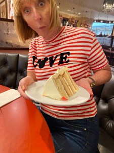 It seems that no matter where we are in the world we are creatures of habit. Rob trying to eat his ice cream before it melted reminded us of the Ben and Jerry’s caramel filled giant cone he attempted to eat at Superhero Island in Islands of Adventure. He felt so sick and was so sticky but the end of it I thought that when he had his photo taken with Captain America and shook his hand he might well stick to him and they’d be trapped together with caramel. Happy days, and oh to be able to shake the Captain’s hand now – the current restrictions mean a distance selfie is the best you’ll get, but hey ho, we do what we can with what we’ve got. So even our UK holidays have us pretty much behaving the same way, going from one meal to another, from one snack to another, and copious amounts of coffee for Rob and cakes/treats for us both. Maybe the treats are different, we didn’t spy any cinnamon rolls or Mickey shaped pretzels, but there was cake and donuts and ice-creams a plenty!