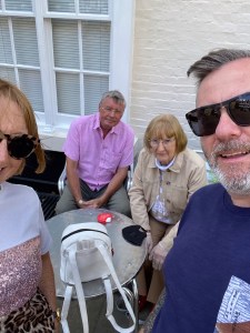 We had a lovely easy journey up and spent a fantastic afternoon in their garden, which is so fabulous it looks like you should have to show your National Trust card to get in. We had a yummy buffet feast in the glorious sunshine and properly caught up with everyone’s news and it was great to see everyone fine and well after what has been a very trying and worrying period for everyone. So the visit started off well, relaxed, eating, drinking and chatting in gorgeous surroundings – great start indeed.