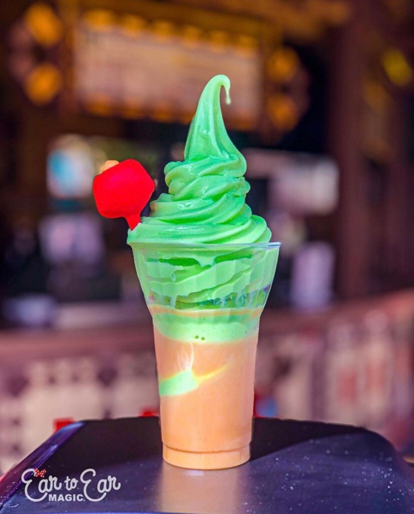 The situation in Orlando can be very “fluid” some days restaurants are fully open the the next day they are closed without warning, same goes for rides and attractions. So always check your park app before you make plans, it’ll save on disappointment. There are so many little things popping up now for the Holidays. There are new shows and cavalcades and lots and lots of new snacks! (This part REALLY peaked our interest!). There’s the Pistachio Chai Tea float which is a soft serve ice cream over spiced Chai tea, with a red velvet cake pop adorning it. Over in Gaston’s Tavern you can find Belle’s Enchanted Christmas Tree, made of Macarons that have been stacked and interspersed with flavoured butter cream – oooh yes please. Over at the Orange Tree Tavern you can get the Orange Bird Christmas dessert, the “bird” is Orange scented white chocolate mousse, filled with Orange curd. That’s a LOT of orange… but we must admit it look as cute as a button. The very helpful and fantastic Chris and Susan from Ear to Ear Magic very kindly sacrificed themselves and tried all of the holiday snacks in Magic Kingdom to let us all know how yummy they are, as well as watching all of the cavalcades to film them for us all to see too. It’s their photos we are using (with permission of course) to show you the sort of yumminess available for the Holidays in WDW. Check out their vlogs for a full look at everything and as an added bonus Susan is singing along to the Christmas tunes during the cavalcades – oh they do make us smile, they are such lovely lovely people.